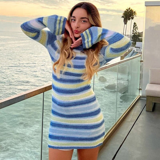 WOLF Gestreiftes Bodycon Streetwear Strickpullover-Kleid