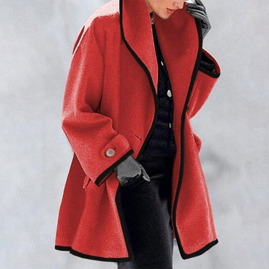 WOLF Mode Multicolor Rundhalsausschnitt Lose Wollmantel