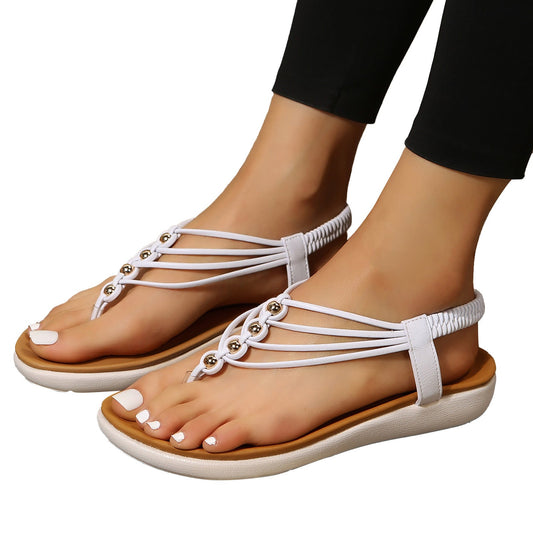 WOLF Mit Perlen besetzte dünne Riemen böhmische Zehenstegsandalen