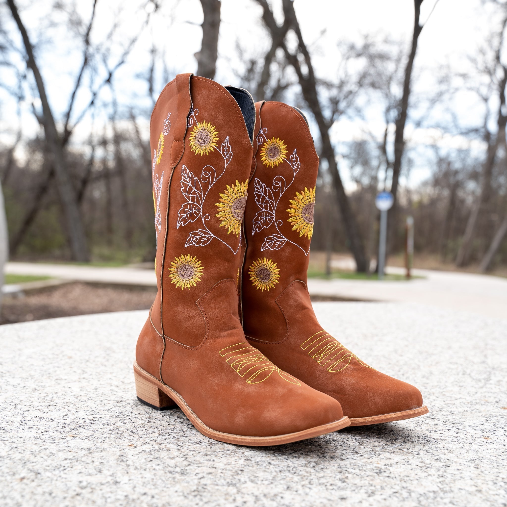 Diese Stiefel sind vielseitig und eignen sich für jede Gelegenheit, egal ob du mit Freunden ausgehst, ein Konzert besuchst oder einfach nur Besorgungen in der Stadt machst. Der Sonnenblumen-Print verleiht jedem Outfit einen farbigen Akzent und ist ein echter Hingucker, egal wo du hingehst!