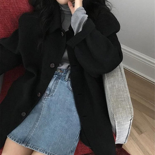 WOLF Lässige Straße Elegante Solide Knöpfe Umlegekragen Oberbekleidung