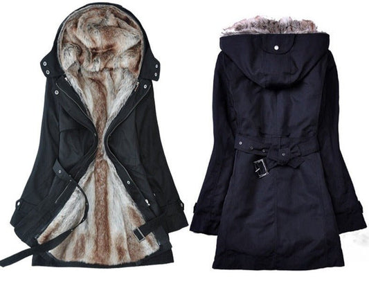 Desavio - Schlanker Kunstpelzmantel für Frauen mit Kapuze