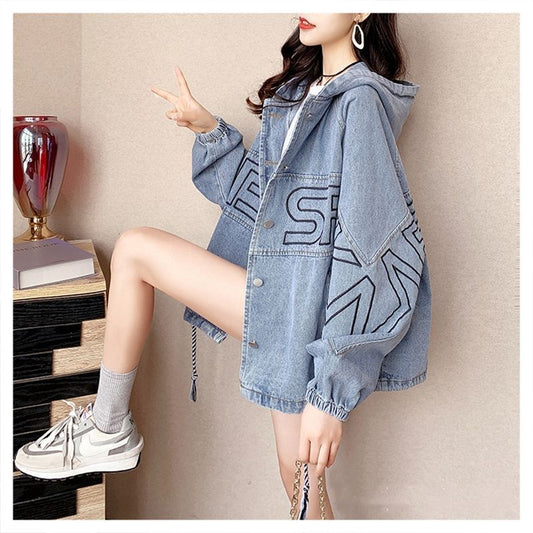 WOLF Lässige solide Patchwork Umlegekragen Kurzarm Regular Denim Jacke