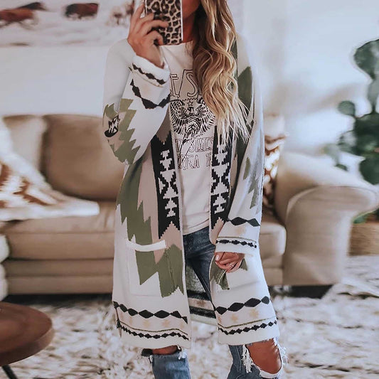 WOLF Langärmeliger bedruckter Strickmantel Wollmantel