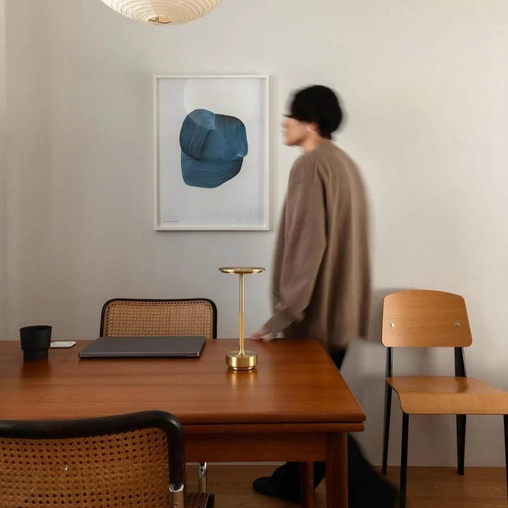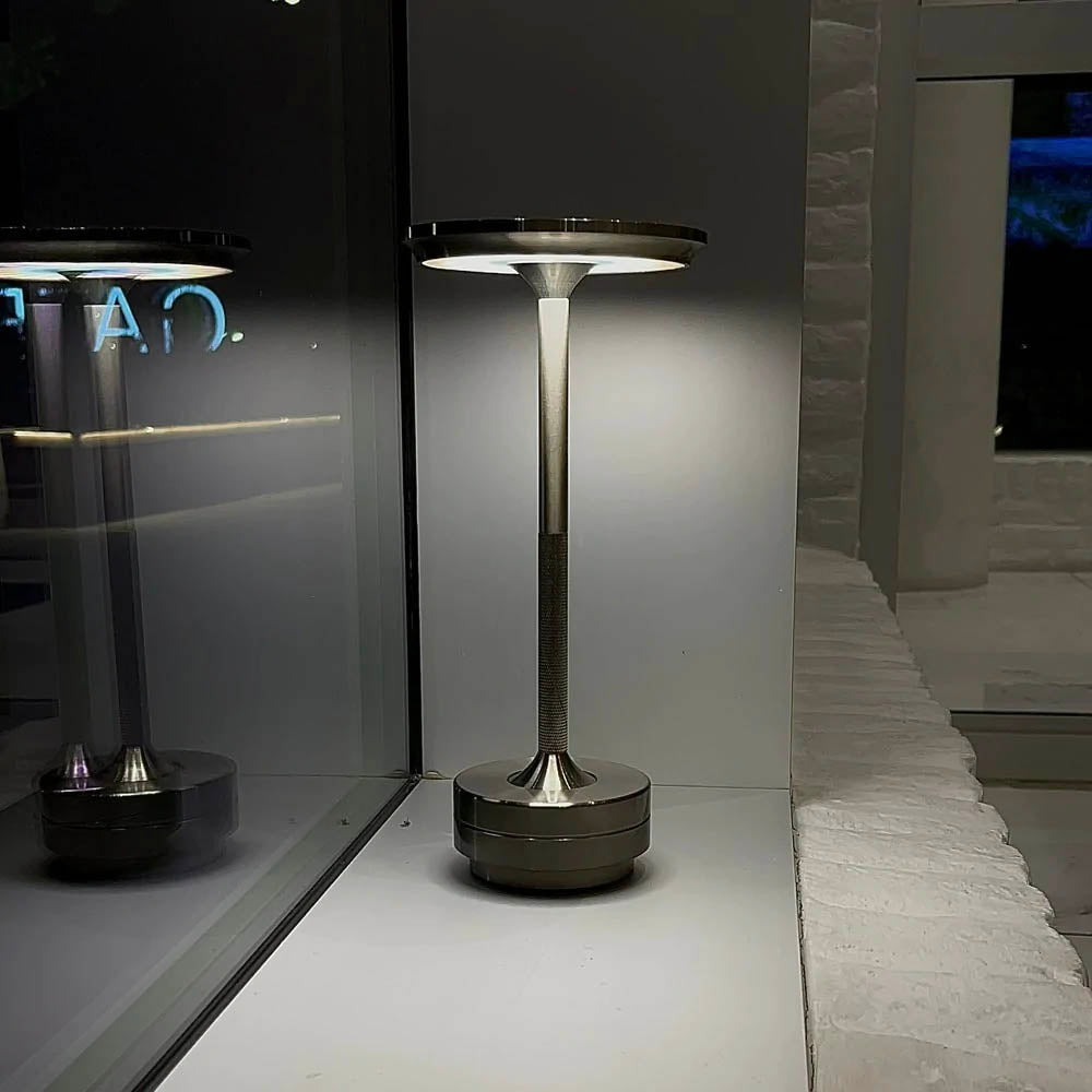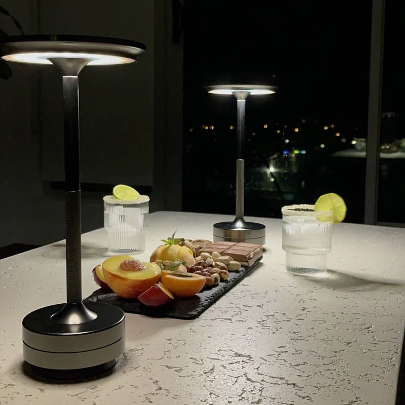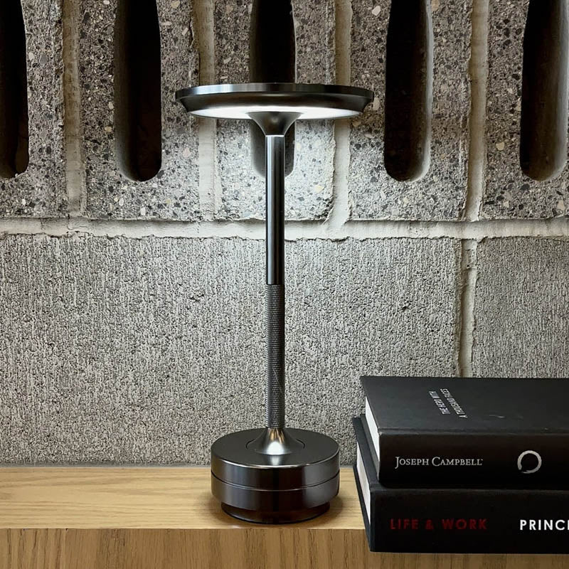 Eluminar™ ist eine kabellose Lampe mit einem Berührungssensor, mit dem Sie die Lichtintensität in drei verschiedenen Stufen einstellen können. Inspiriert von natürlichem Licht und den weichen, vertrauten Konturen klassischer Laternen, ragt diese Lampe über Ihnen auf und verbreitet ein sanftes Licht von unten, um die Dunkelheit mit einem warmen Schein zu umhüllen, der die Nacht noch schöner macht. Die Lampe kann über einen USB-C-Anschluss aufgeladen werden.