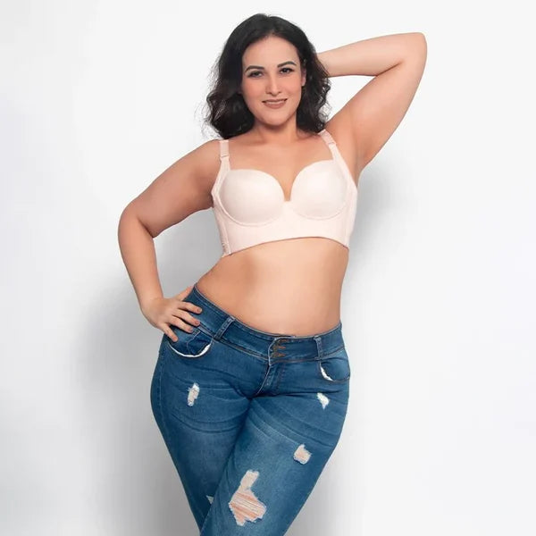 Der BH ist mit einem hohen Rücken und extrabreiten Seiten ausgestattet, die die Kontur deines Oberkörpers formen und abmildern und die unbequemen Röllchen vermeiden, die bei herkömmlichen BHs auftreten.