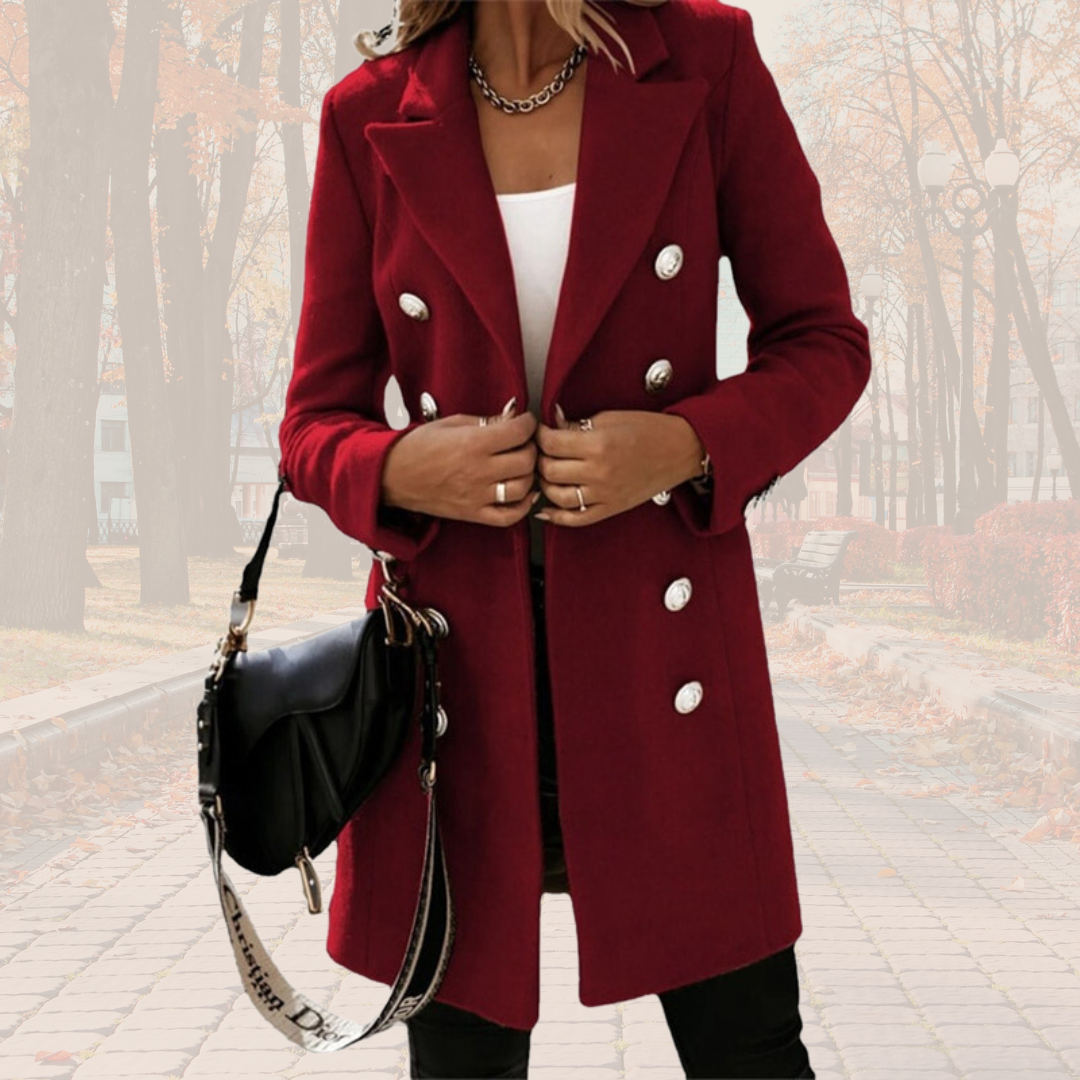 Luna Mantel | Eleganter und Bequemer langer Trenchcoat in Woll-optik mit Knöpfen
