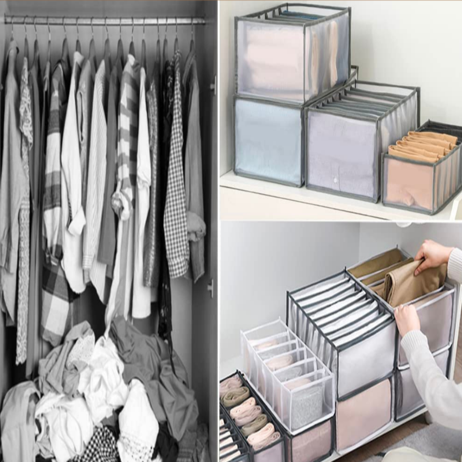 Kennen Sie das Problem, wenn Ihr Stauraum überfüllt und unübersichtlich ist? Der OrganizerPro™ kann Abhilfe schaffen. Mit sieben Segmenten hilft er, Ordnung in Schränken und Schubladen zu schaffen und erleichtert den Zugriff auf Ihre Sachen. Kein lästiges Durchwühlen mehr – jetzt können Sie Ihre Kleidung und Accessoires problemlos organisieren, ohne schweres Heben!