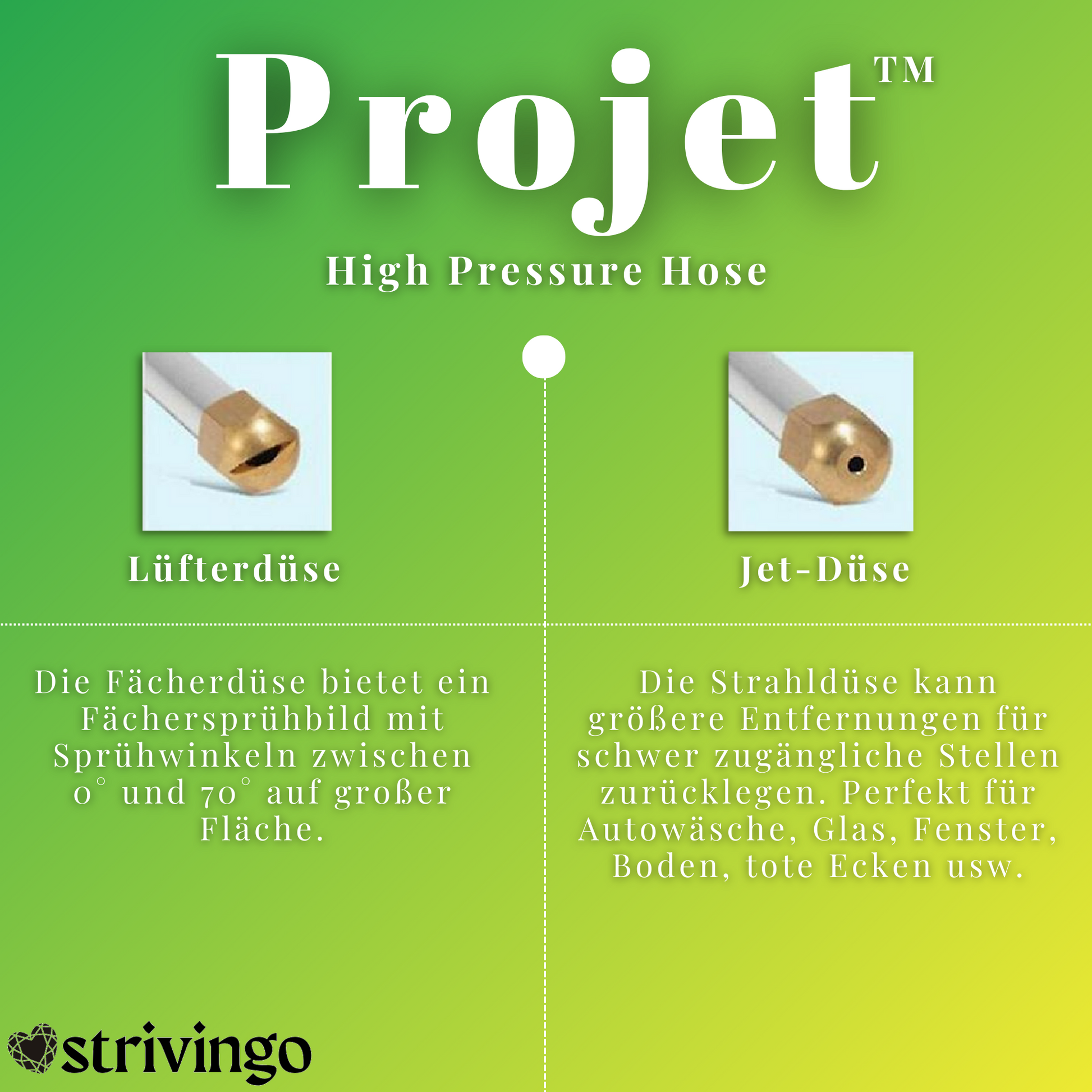 Der Projet Hochdruckschlauch ist einfach zu installieren und kann an Standard-Gartenschläuche angeschlossen werden. Dieser Power Washer funktioniert wie ein normaler Wasserschlauchsprüher und lässt sich mühelos an deinen Schlauch anschließen.