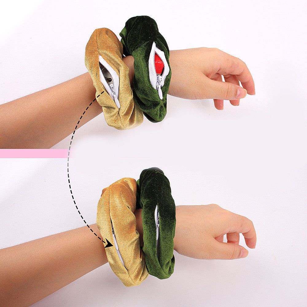 Stasha™ Haargummis verfügen über eine versteckte Tasche, die sich mit einem unauffälligen Reißverschluss öffnen und schließen lässt.