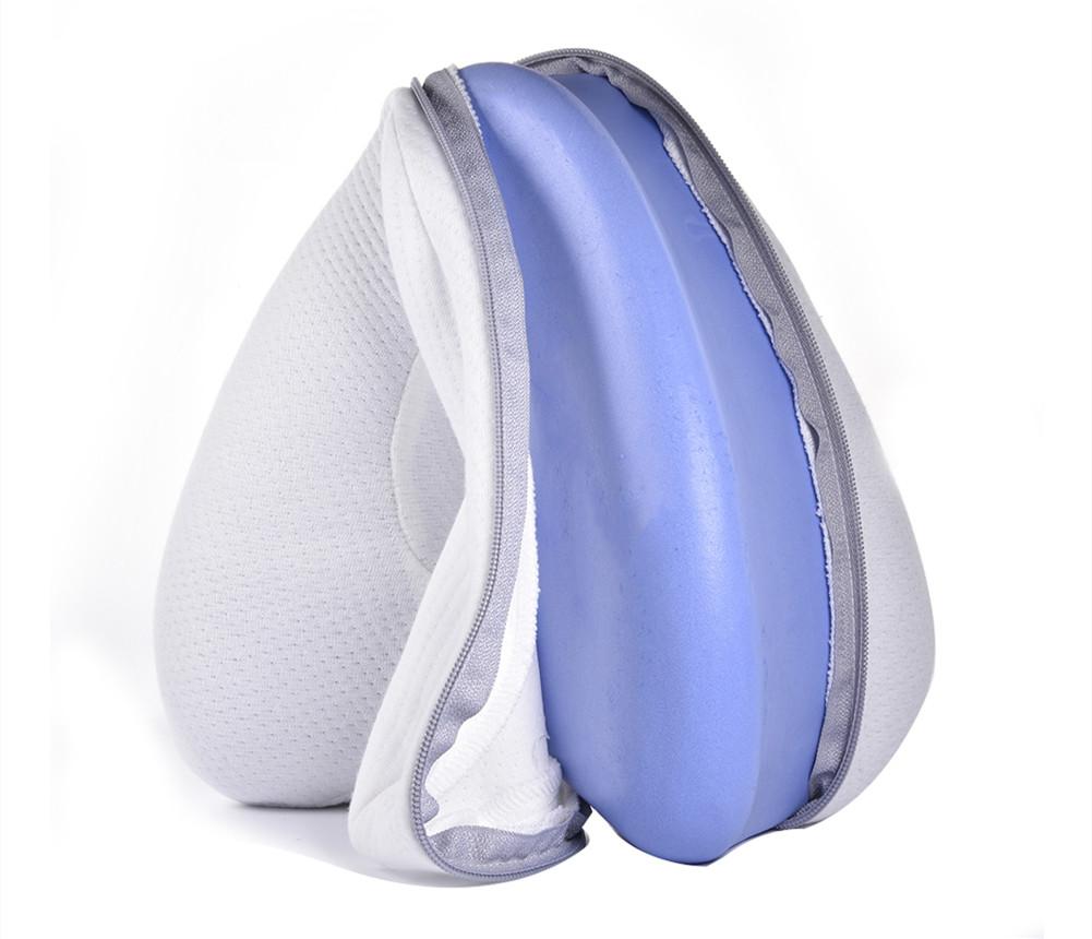 Das sichelförmige Kissen aus Memory Foam passt sich an die Beinform sowie an die weibliche oder männliche Anatomie an und erlaubt auch ein Anwinkeln der Beine, ohne, dass das Kissen verrutscht.