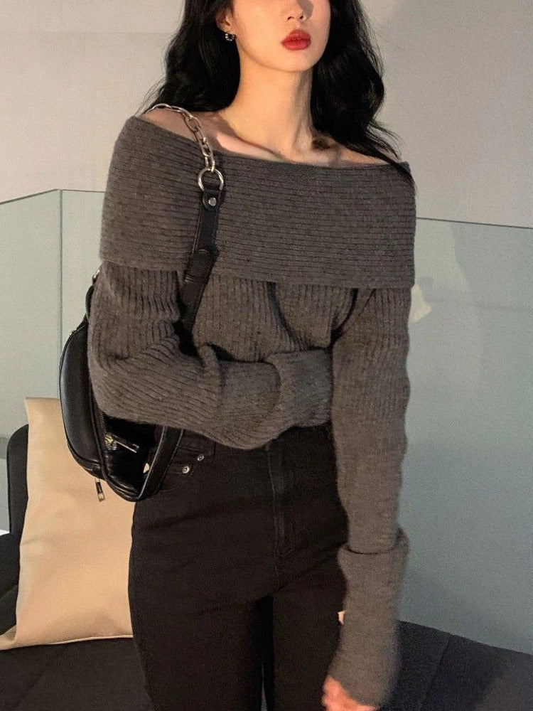 WOLF Aus Schultern Lang Ärmel Pullovers