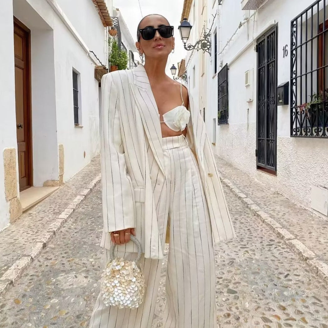 WOLF Hohe Straße Gestreifte Übergrößen Blazer