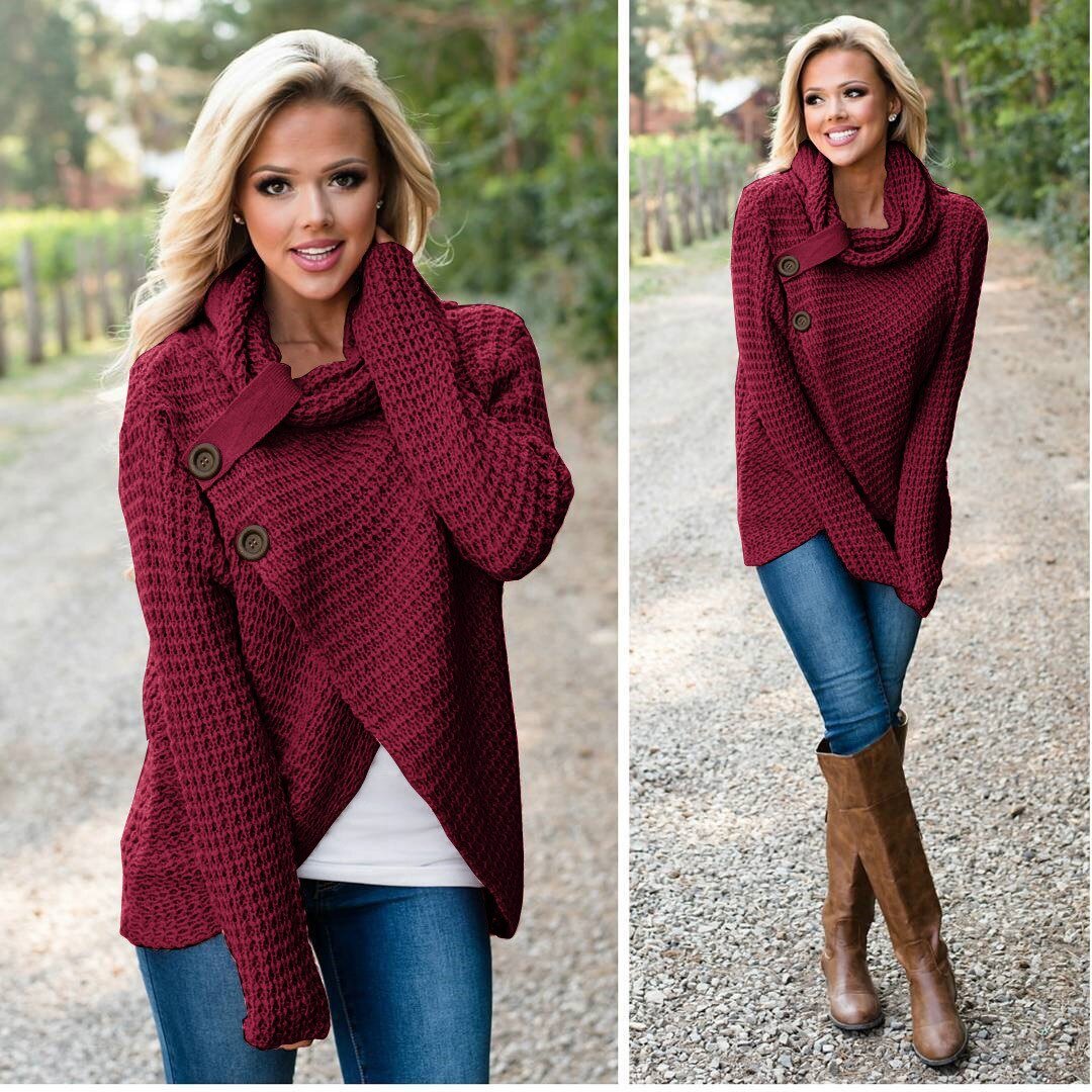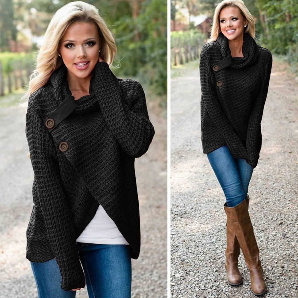 WOLF Langärmelig Schaltfläche Solider Pullover