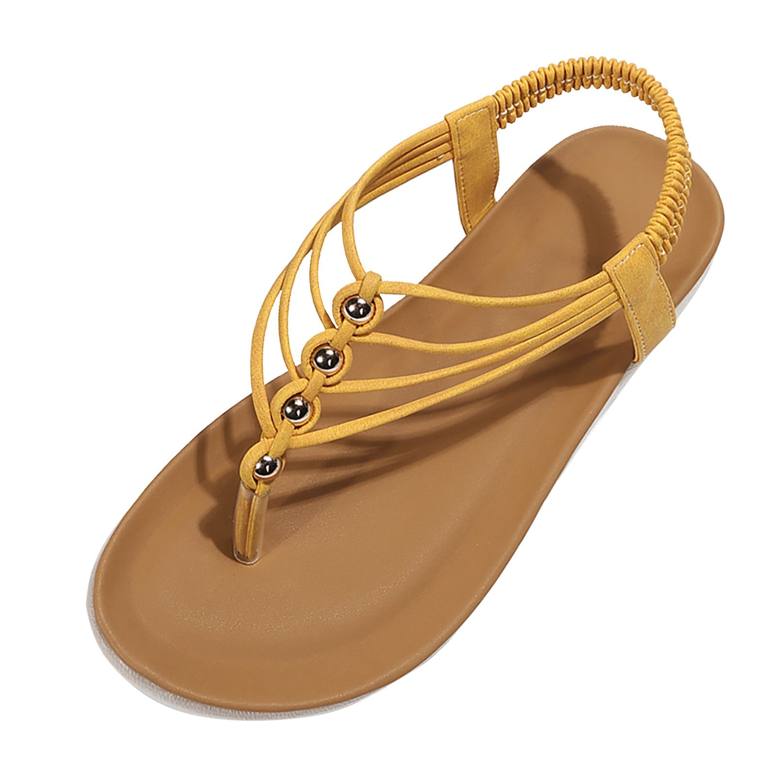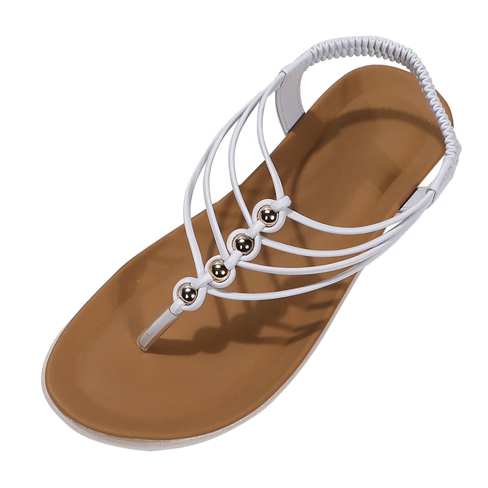 WOLF Mit Perlen besetzte dünne Riemen böhmische Zehenstegsandalen
