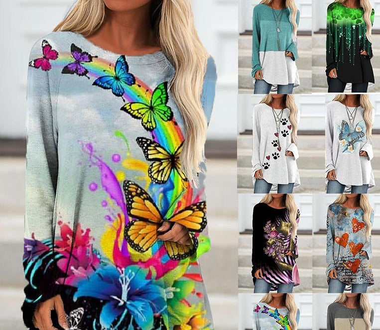 WOLF Schmetterling Blumendruck Langarm Rundhalsausschnitt