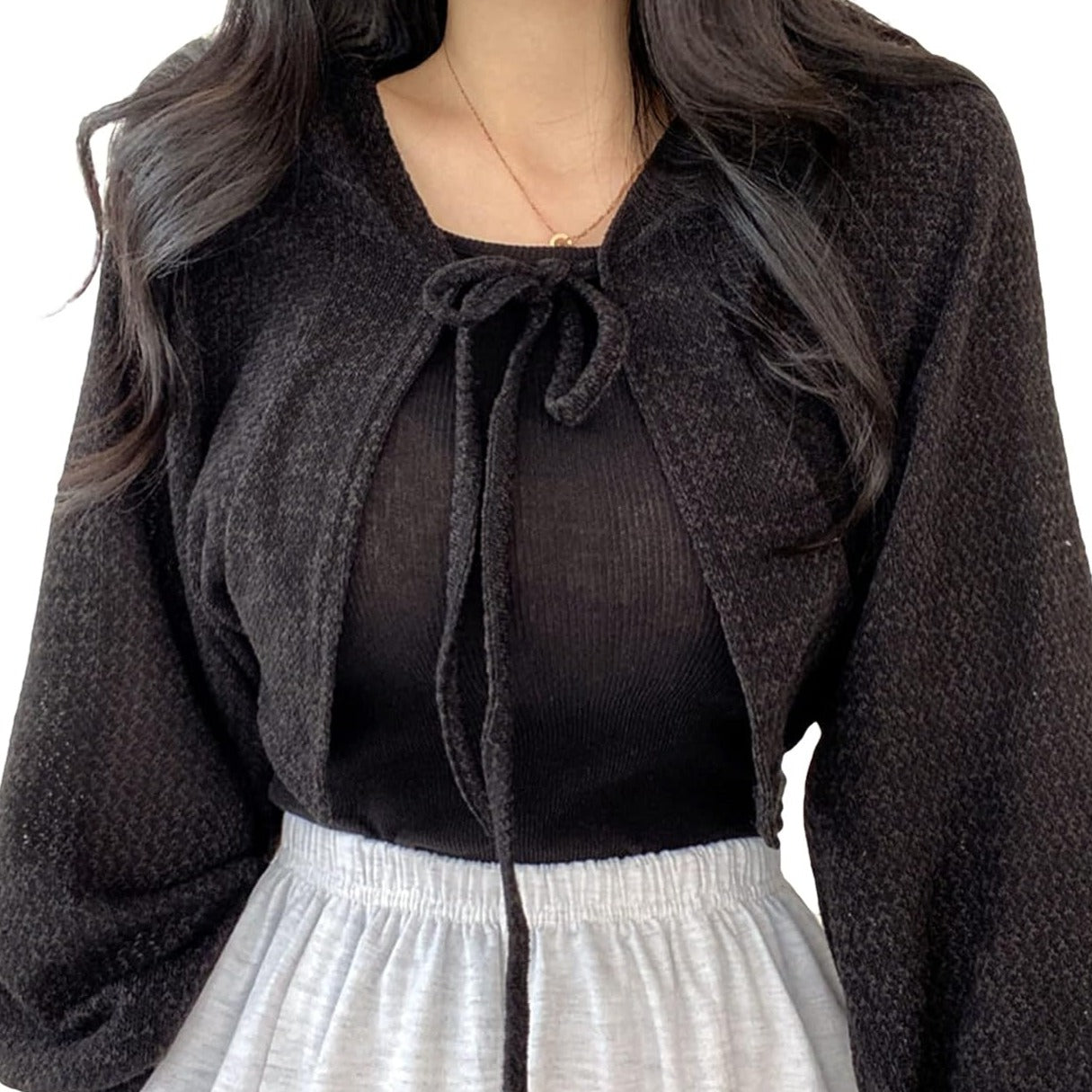 WOLF Schnürung Lange Laterne Ärmel Strickjacke