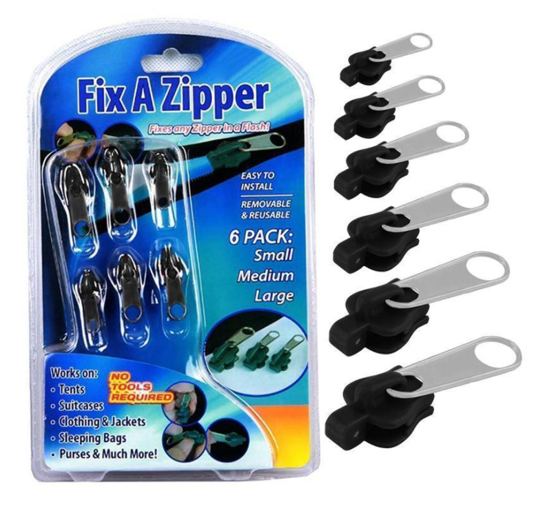 Ist dein Reißverschluss gebrochen? Kein Problem! Mit Zip Zip – dem einfach zu bedienenden universal Reißverschluss – kannst du geteilte Reißverschlüsse, gebrochene Schieber und bis zu drei fehlende Reißverschlusszähne reparieren!